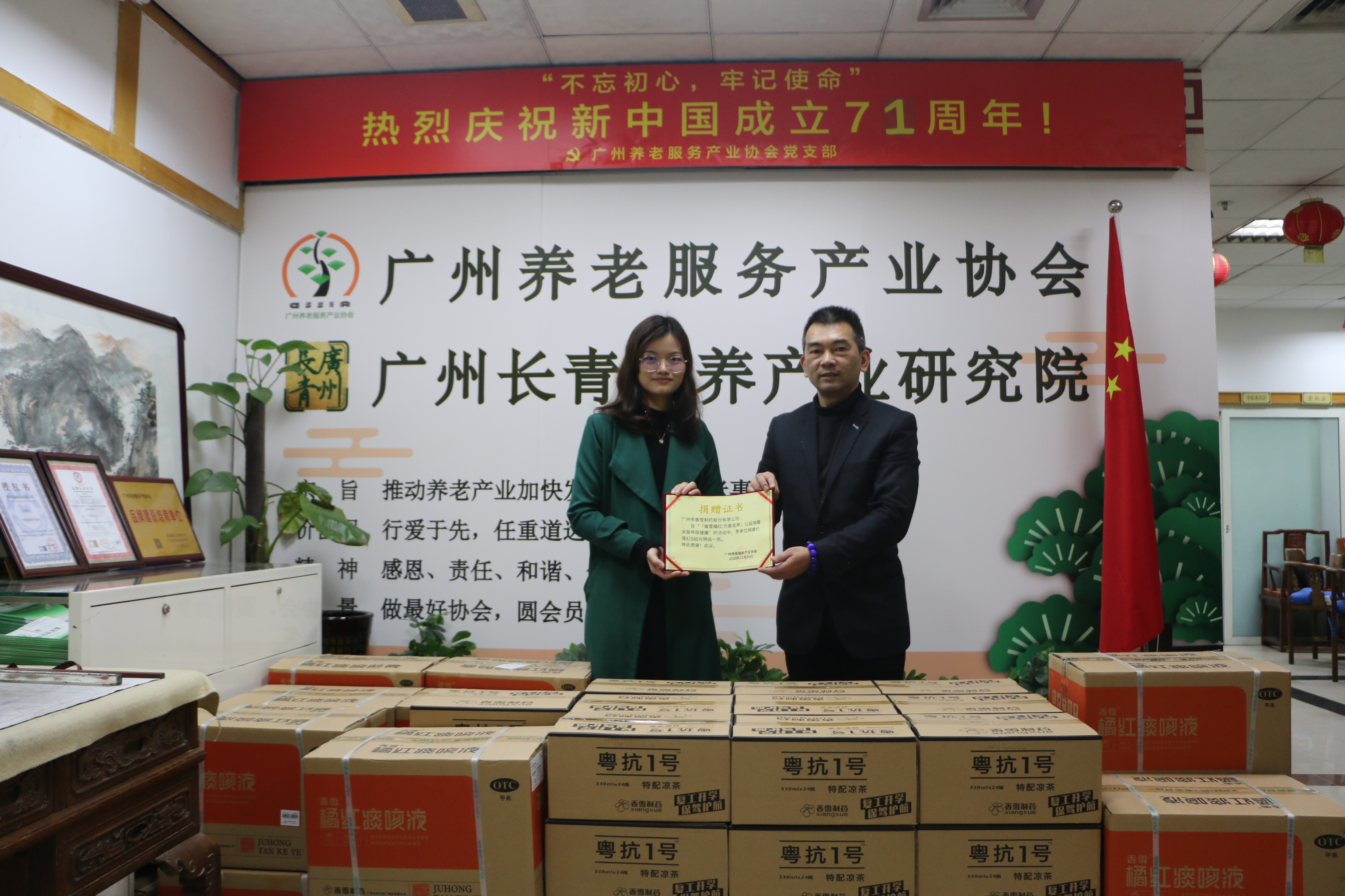 同日,304永利集团通过广州养老服务产业协会向珠光街长者健康家园、华邦美好家园养老集团捐赠一批橘红痰咳液、粤抗1号凉茶,为有需要帮助的老人们送上温暖。