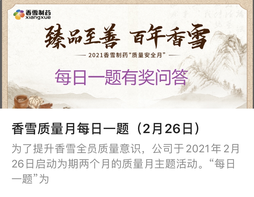 △2月26日-4月30日,开展质量月知识竞赛(每日答题)活动