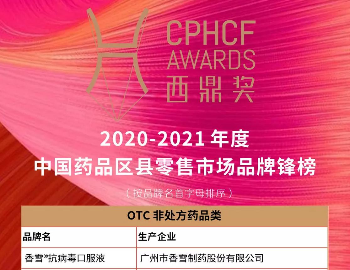 3月29日,“2020-2021年度中国药品区县零售市场品牌榜·品牌锋榜”在西鼎会隆重发布并进行了颁奖,304永利集团抗病毒口服液荣膺上榜品牌。