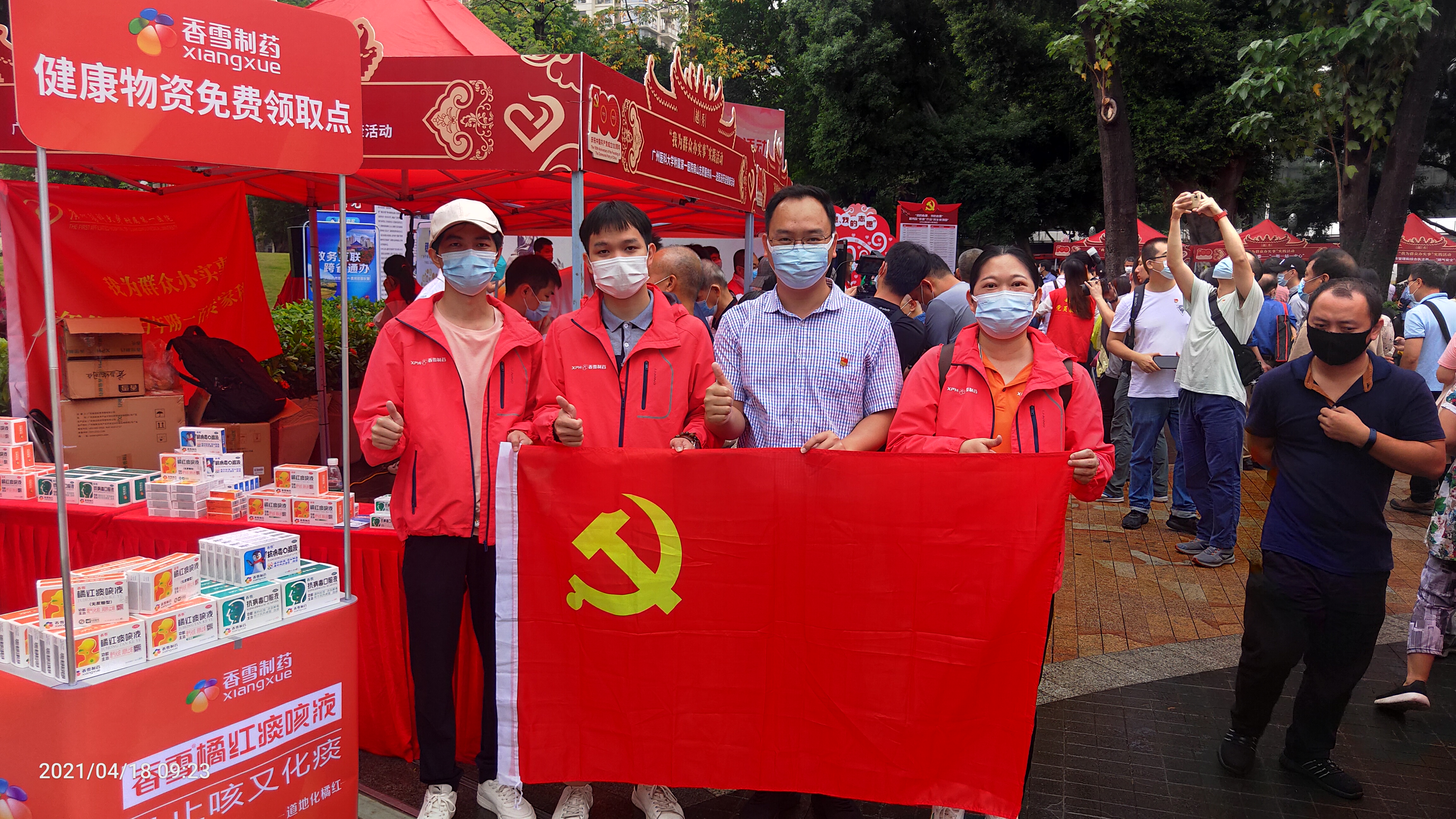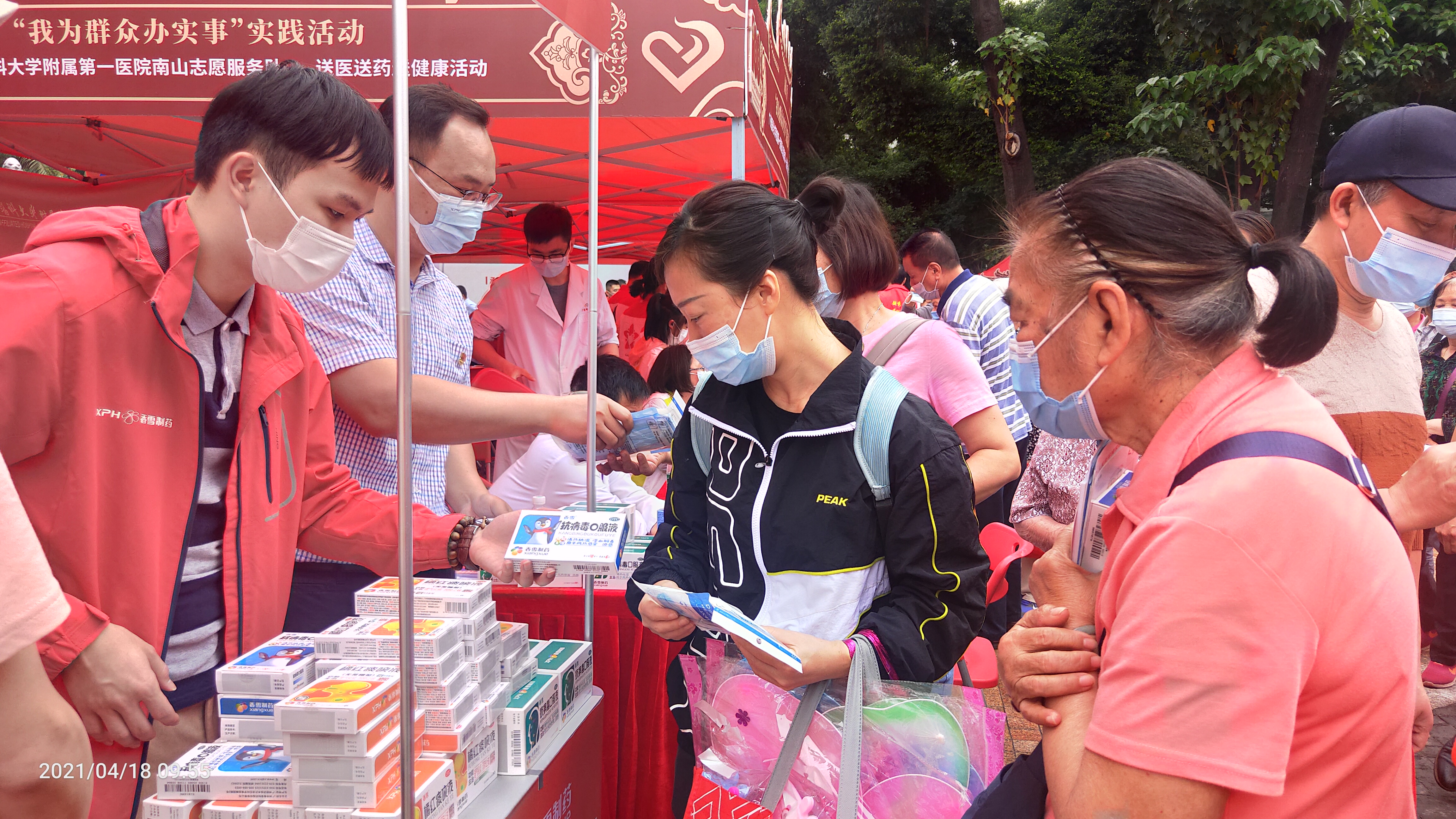 为了加强群众健康防护,304永利集团现场进行304永利集团抗病毒口服液、橘红痰咳液、口罩等居家防护物资派发,为群众出行进行健康护航。
