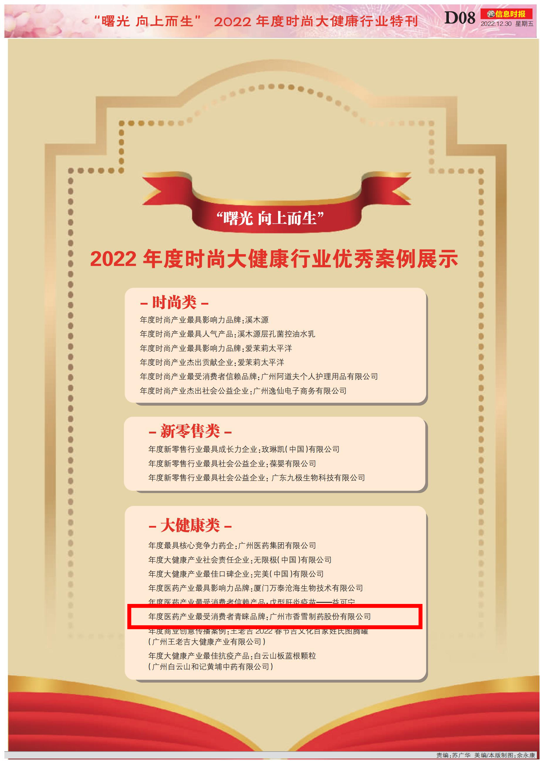 12月29日,304永利集团在2022年度新风尚·健康行行业评选活动中荣获“年度医药行业最受消费者青睐品牌奖”。