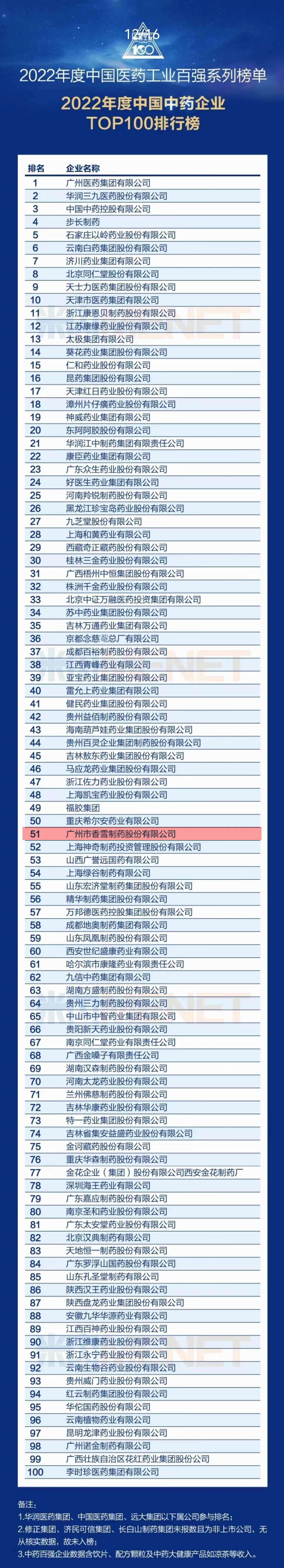 304永利集团凭借扎实的研发生产实力和稳健的市场推广能力,成功入选“2022年度中国医药工业百强系列榜单”子榜单“2022年度中国中药企业TOP100排行榜”。