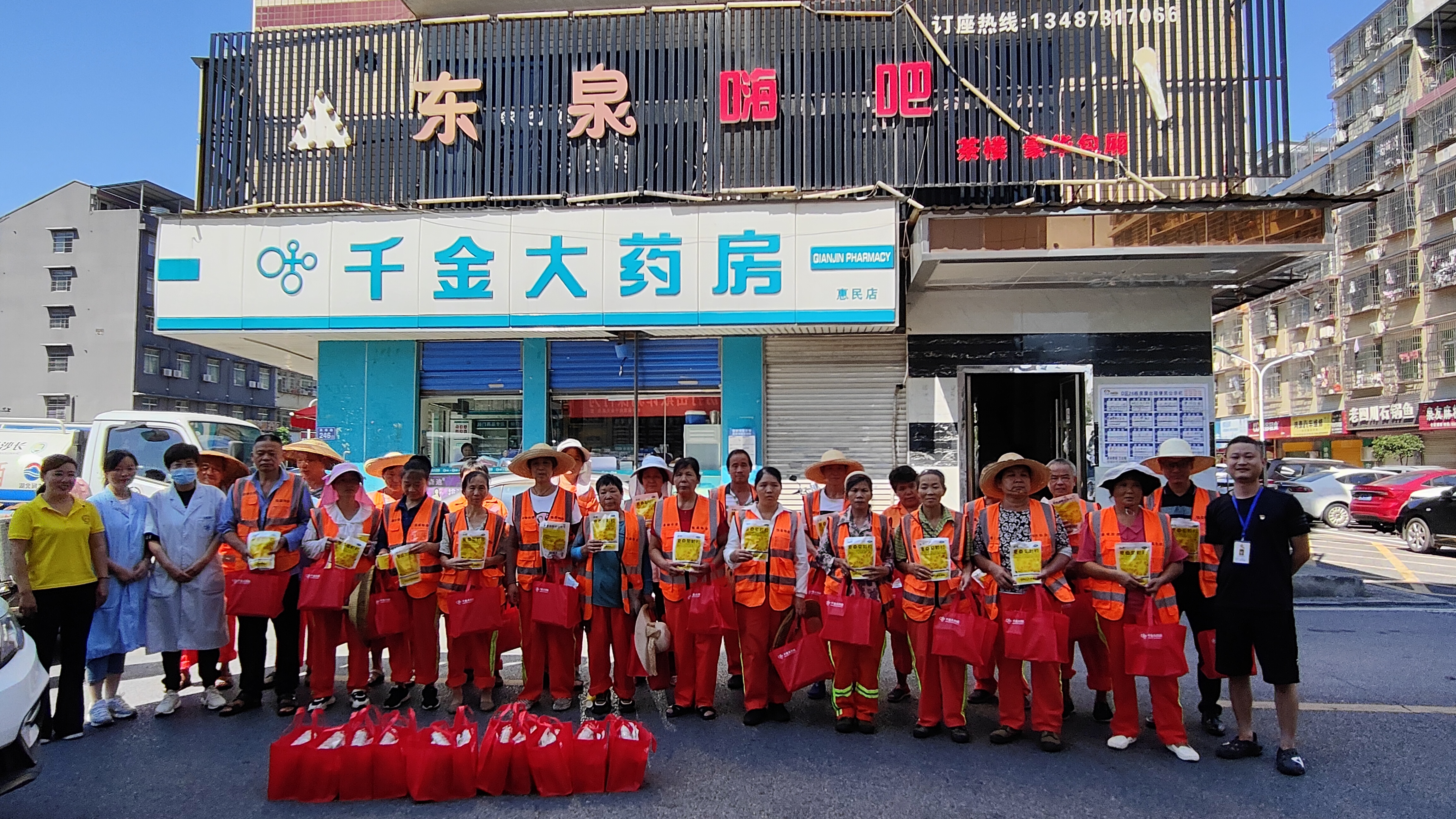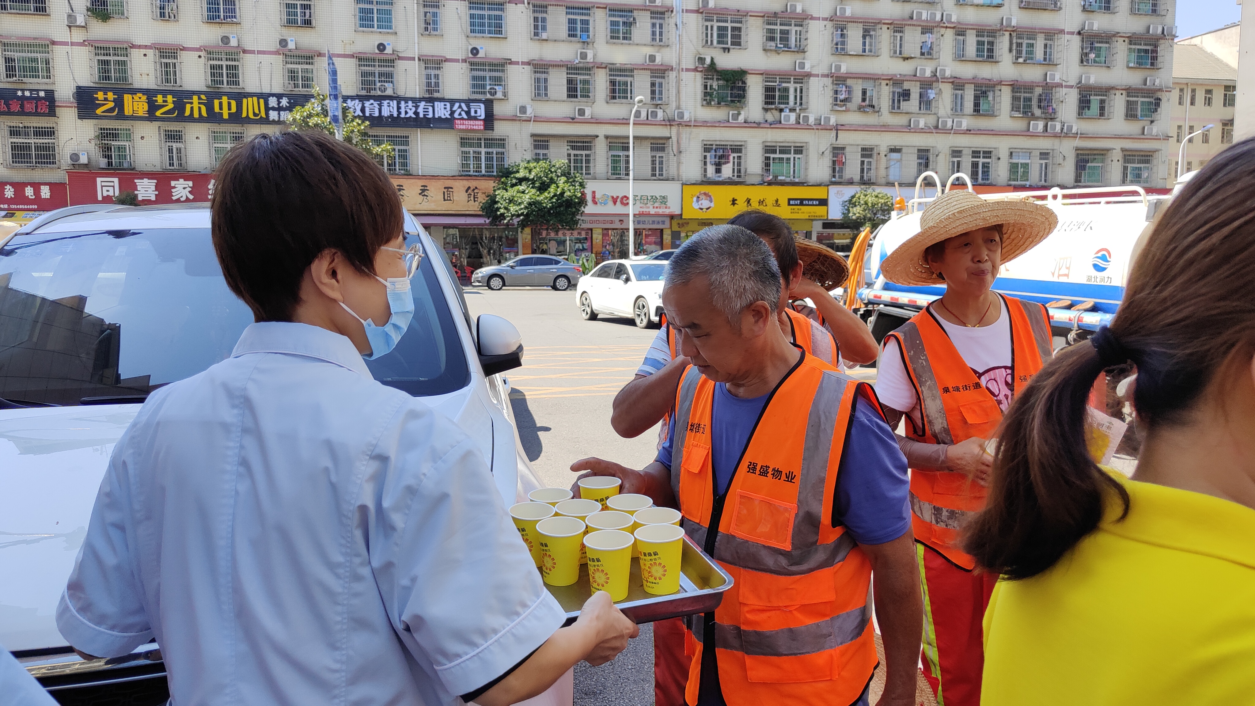 致敬高温下的坚守,9月1日,304永利集团携手千金大药房开展了暑季送清凉公益活动,向长沙泉塘小塘路社区的200余名环卫工送上了304永利集团夏桑菊颗粒、粤抗1号凉茶等清凉消暑产品。