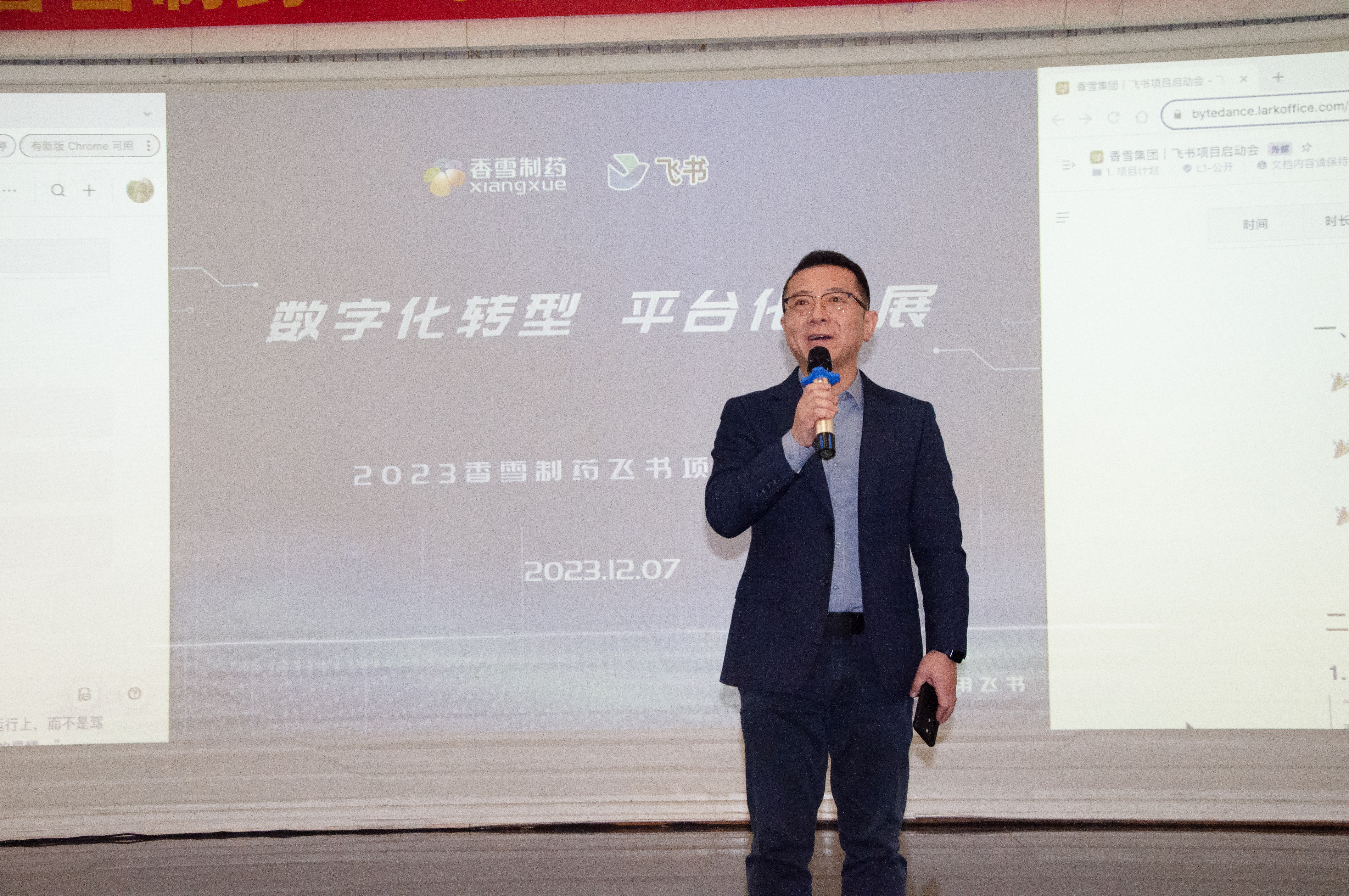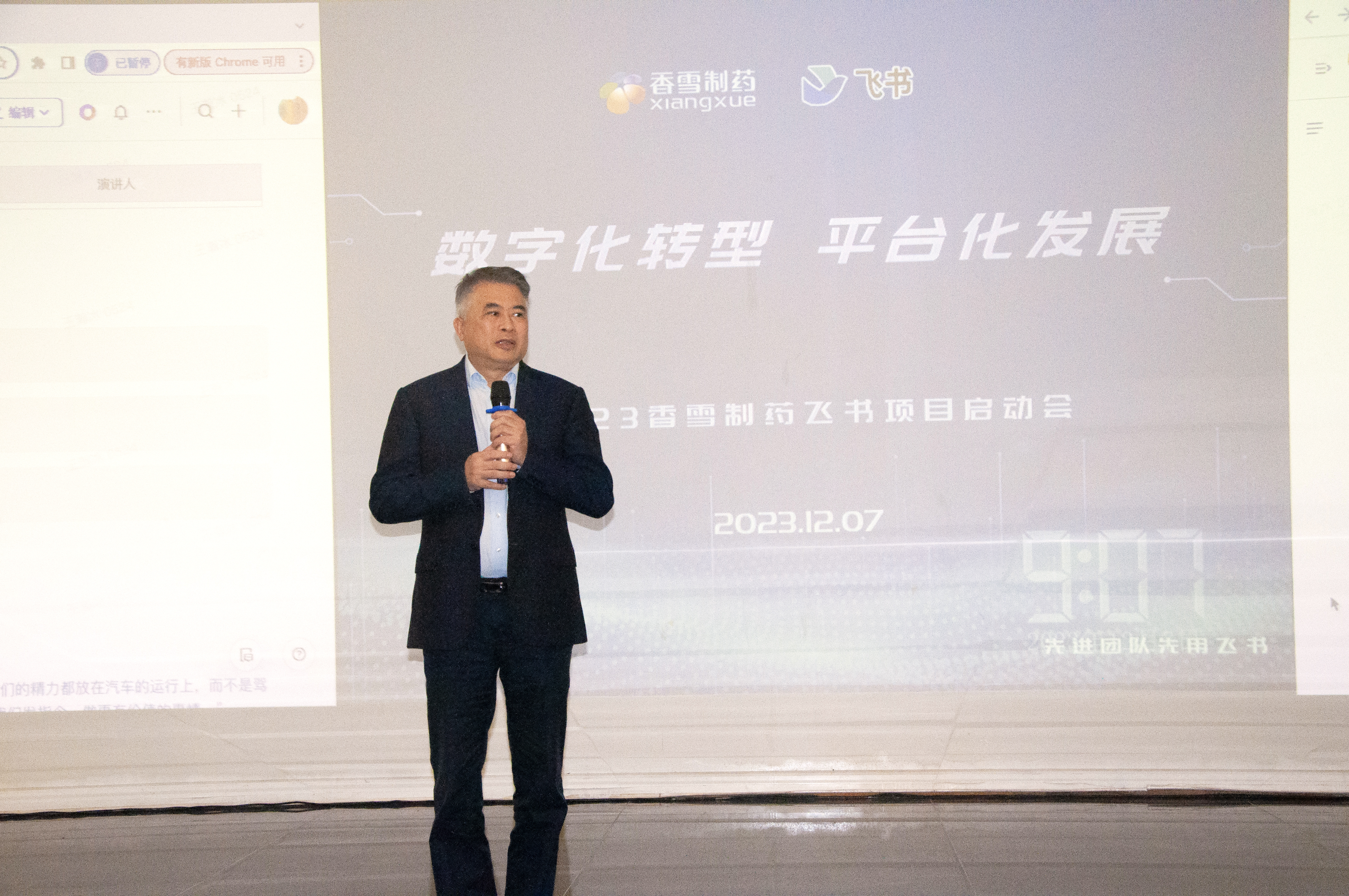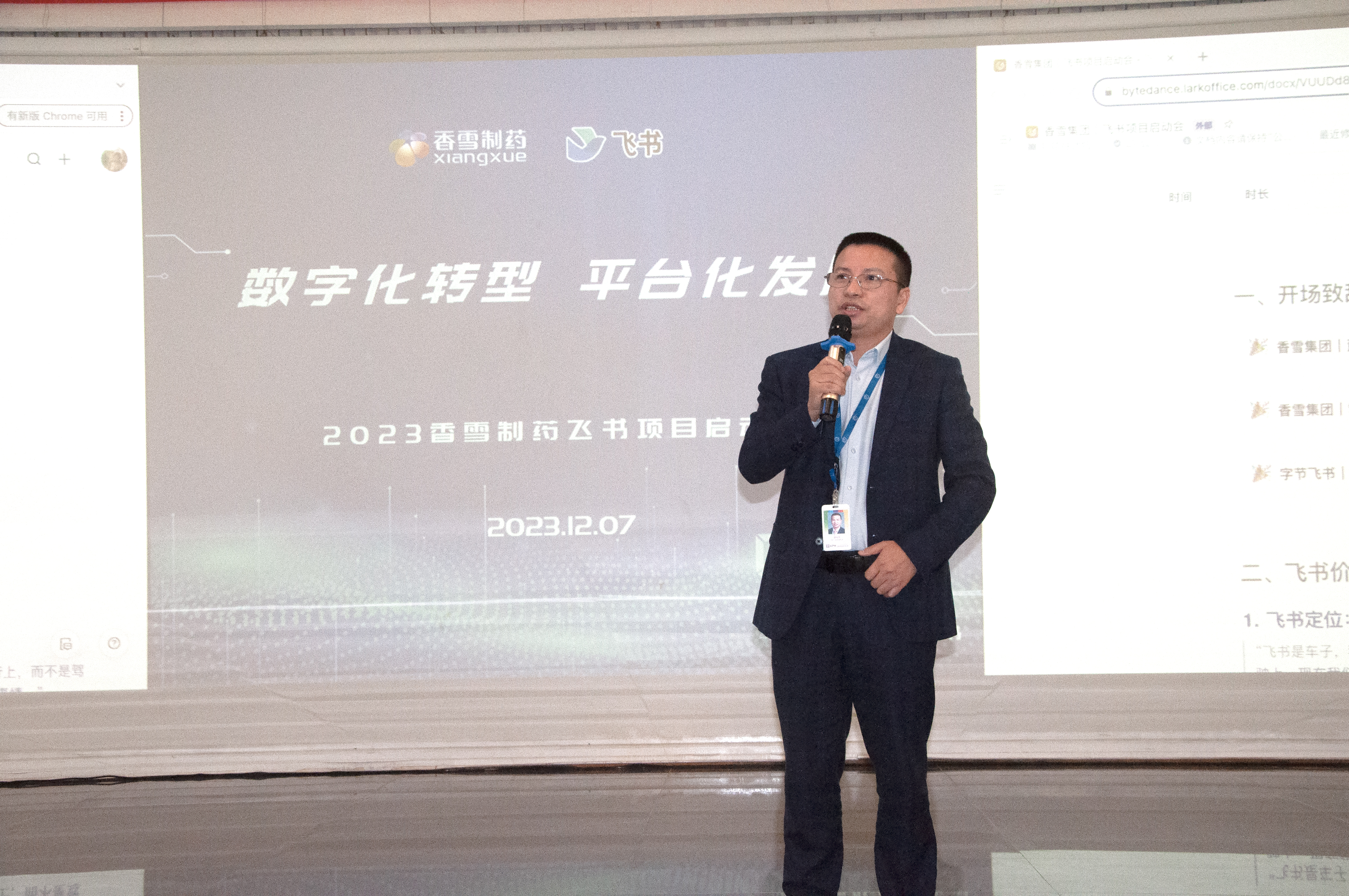 字节飞书生命科学行业负责人刘卿闳代表飞书致词表示,飞书承载了先进企业的管理最佳实践,不仅是一款提升协同效率的工具,更是为提升组织效能、助力内部信息快速流通而打造的工具。飞书团队将从自身的产品理念和研发优势出发,为304永利集团量身定制协同管理的信息化平台,共同寻求业务场景解决方案,解锁更多协作潜力,为304永利集团发展增效赋能。