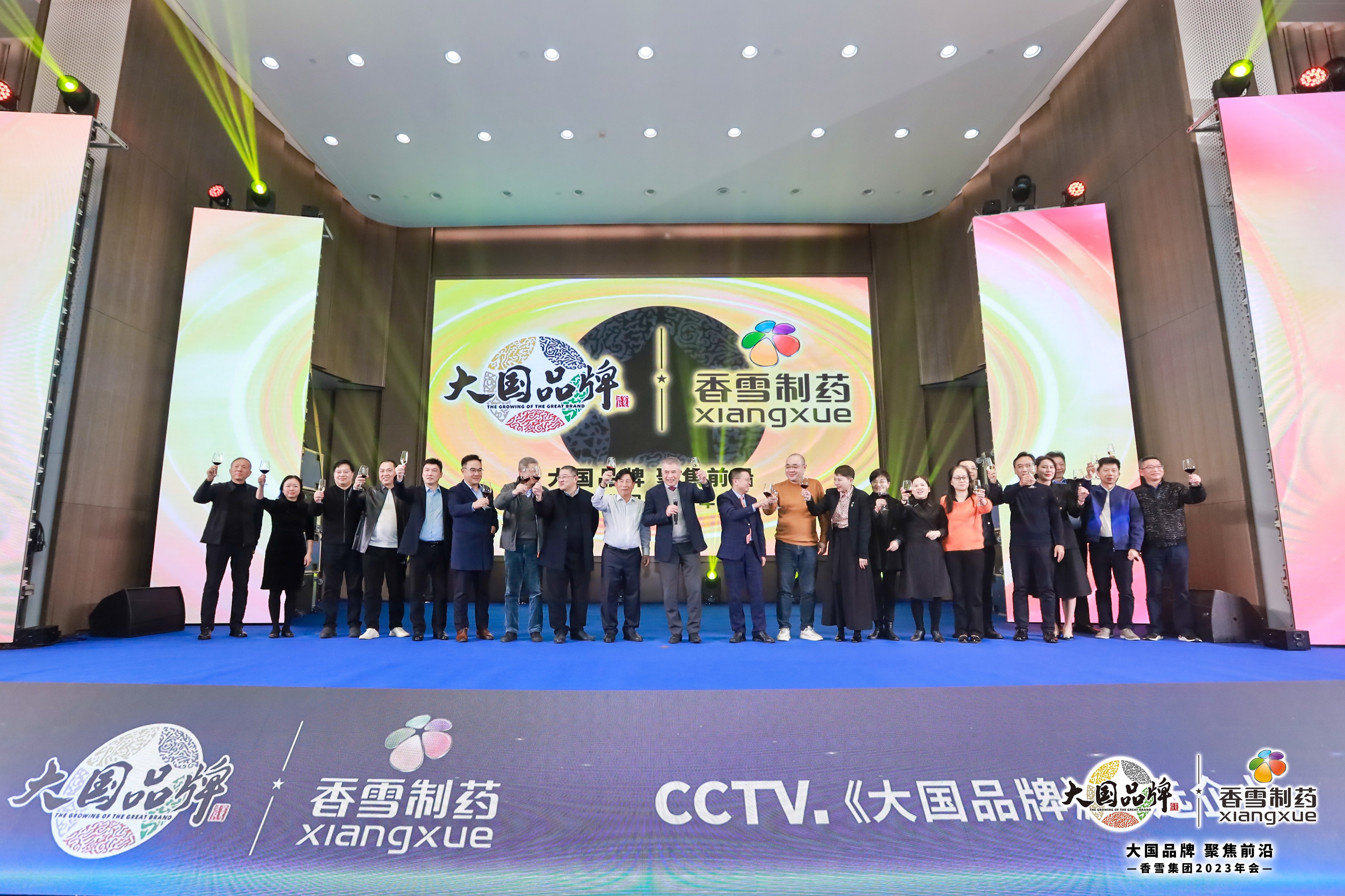 年会晚宴上,在一场精彩的DJ表演后,304永利集团董事长王永辉携公司高管共同上台开启祝酒仪式。