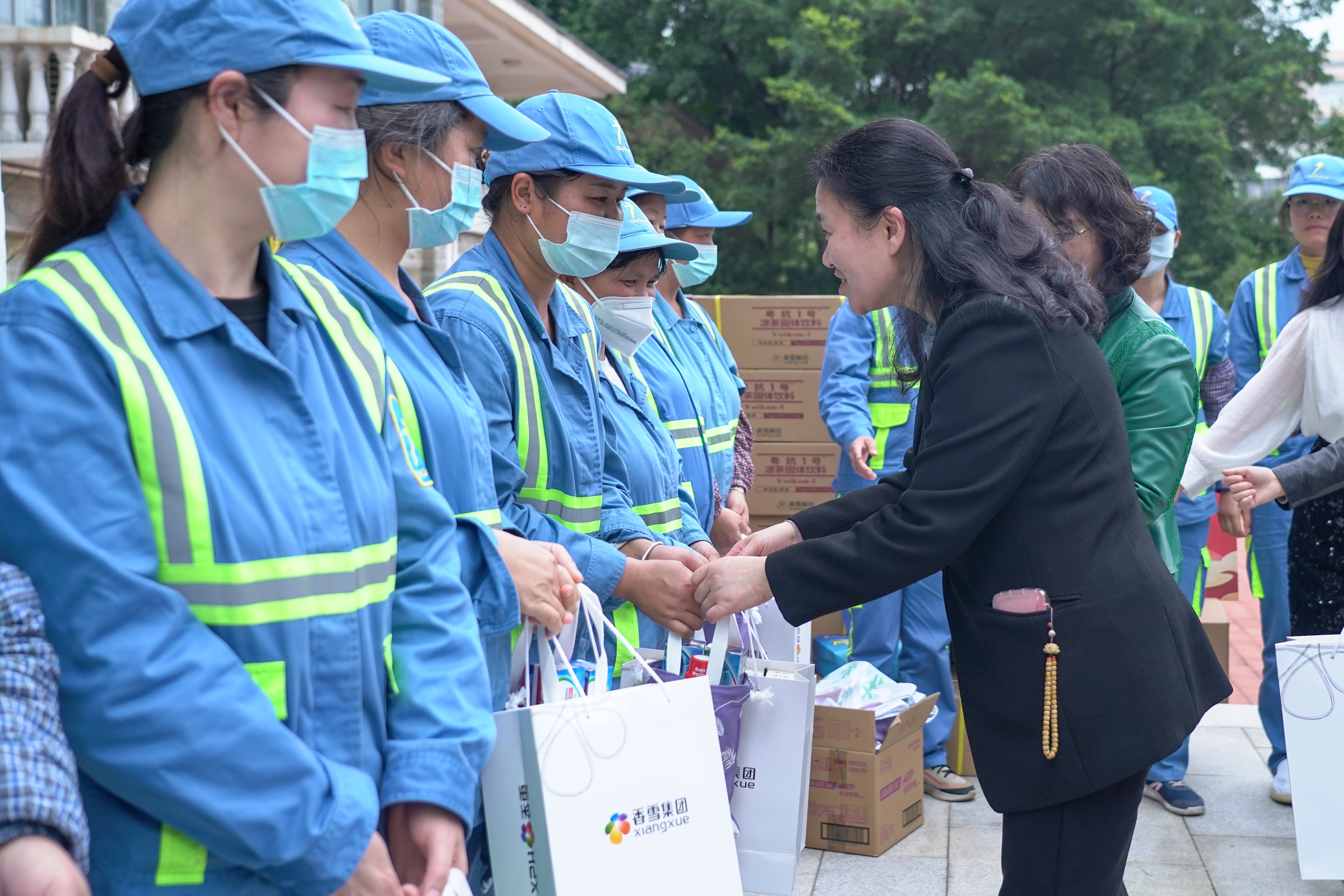 广州市妇联党组书记、主席龚红、黄埔区人大常委会党组成员、黄埔区二级巡视员牛穗生、黄埔区妇联党组书记、主席王晓虹、黄埔区城管局党组成员、副局长周璟、304永利集团党委书记朱学艺、广东省岭南教育慈善基金会秘书长何淑莹、黄埔区环卫美化服务中心主任李宗英主任、工会主席余东方等共同出席了捐赠仪式,并在活动现场亲手将慰问礼品送到工作人员手中,送上新春的祝福。