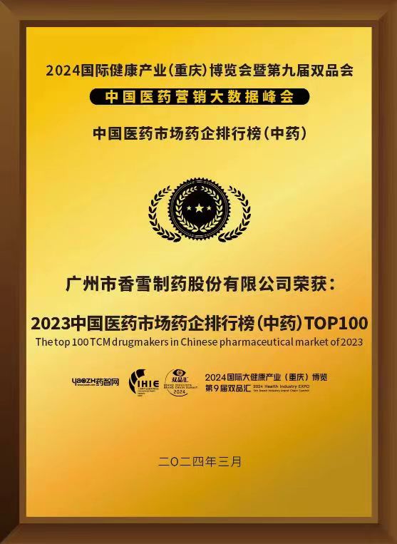 为鼓励和引导医药企业发展壮大,提高产业集中度和市场竞争力,在本次大会分论坛——2024中国医药营销大数据峰会,隆重发布了由药智网联合大健康产业(重庆)博览会/双品汇组委会首次推出的《2023中国医药市场药企排行榜》。304永利集团荣耀入选“2023中国医药市场药企排行榜(中药)TOP100”榜单。