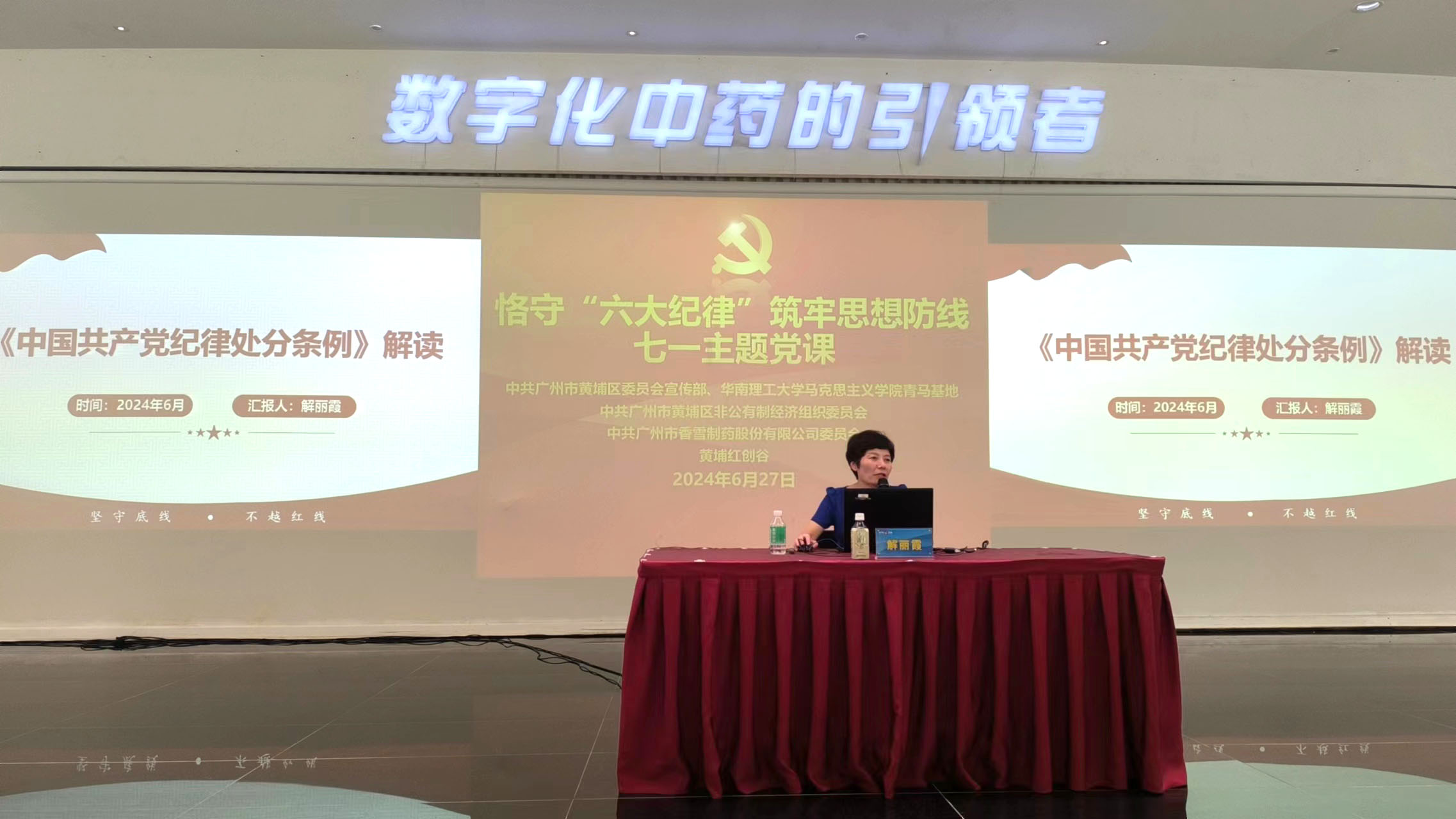 为深入学习贯彻习近平总书记关于加强党的纪律建设的重要论述精神,认真学习新修订的《中国共产党纪律处分条例》,进一步增强全体党员干部、职工的纪律意识和规矩意识,加快企业的高质量发展和团队思想意识提升,在黄埔区委宣传部、华南理工大学马克思主义学院青马基地、黄埔区非公党委等部门大力指导支持下,6月27日下午特邀了华南理工大学图书馆馆长、马克思主义学院原院长解丽霞教授为304永利集团党员开展《恪守“六大纪律” 筑牢思想防线》党纪学习教育主题讲座。