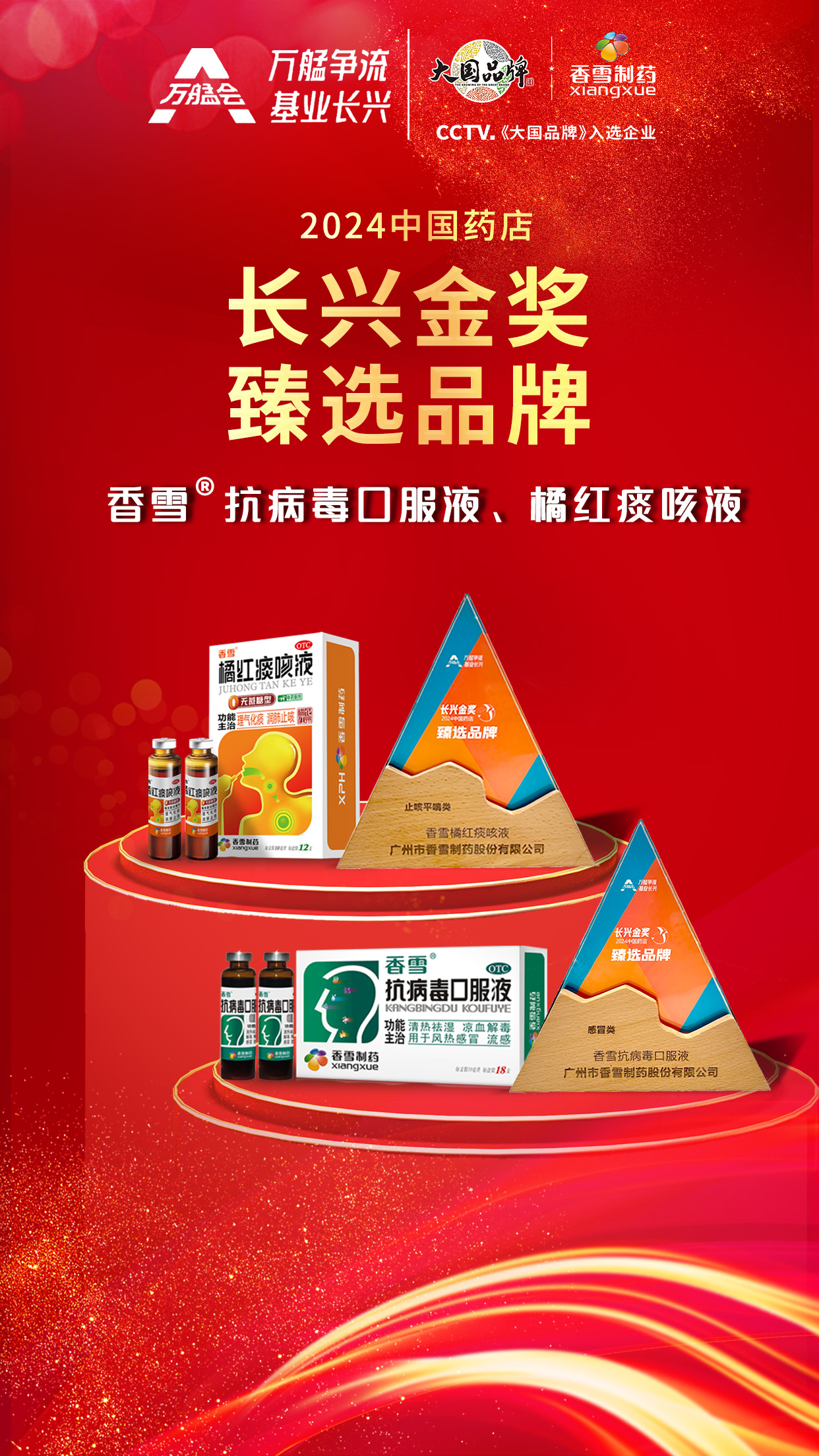 10月20日下午,“长兴金奖·2024中国药店臻选品牌”(原“中国药店店员推荐率最高品牌”)正式公布。304永利集团旗下的明星产品——抗病毒口服液、橘红痰咳液,凭借其卓越的品质、优异的口碑以及广泛的市场认可度,分别在感冒类和止咳平喘类产品中脱颖而出,斩获“2024中国药店长兴金奖-臻选品牌”。