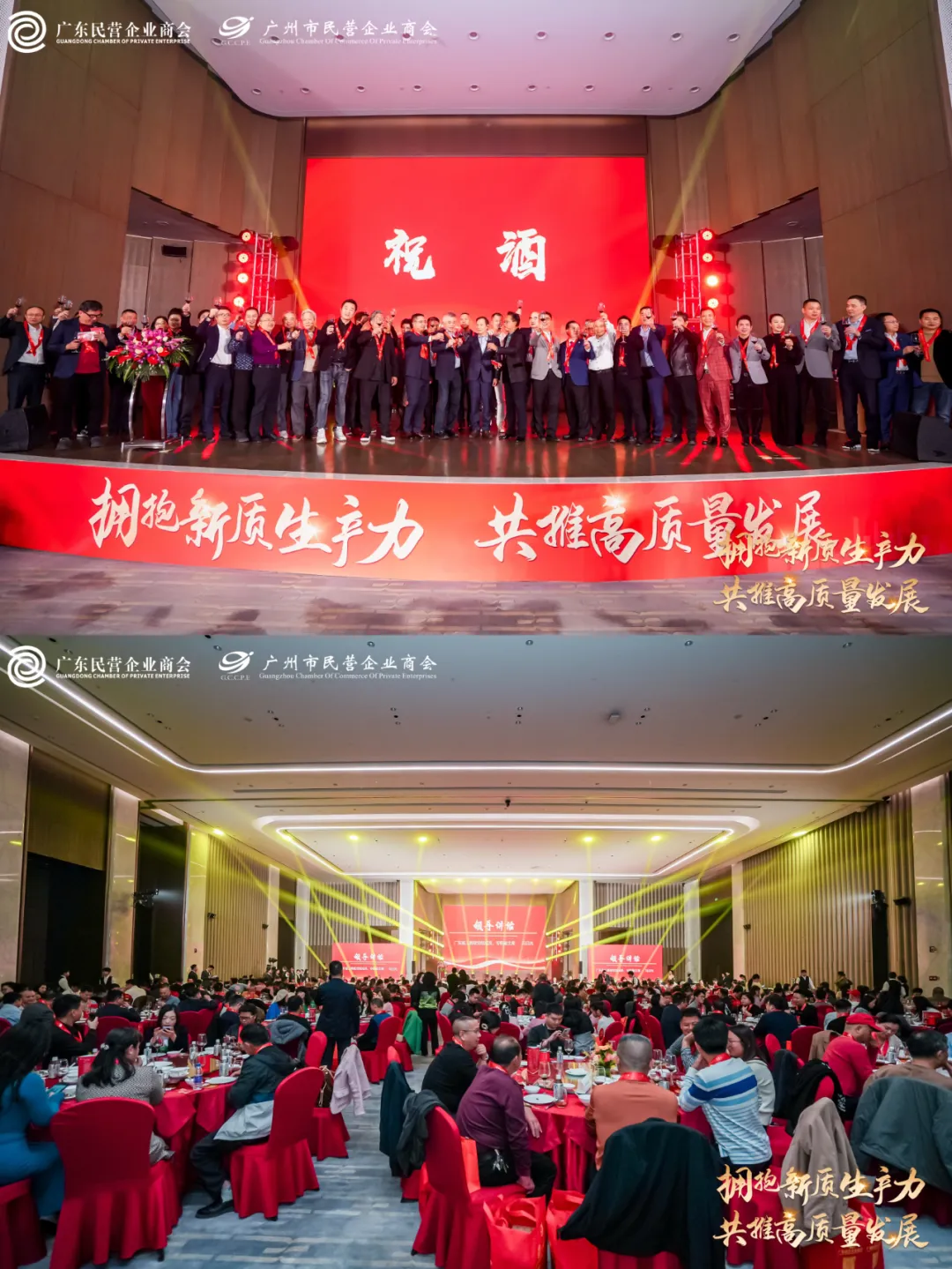 12月26日,在广东省工商联、广州市工商联指导下,由广州市民营企业商会与广东民营企业商会联合举办的2024年年会暨助力 “百千万工程”推进会在洲至奢选香岚官洲酒店举行。