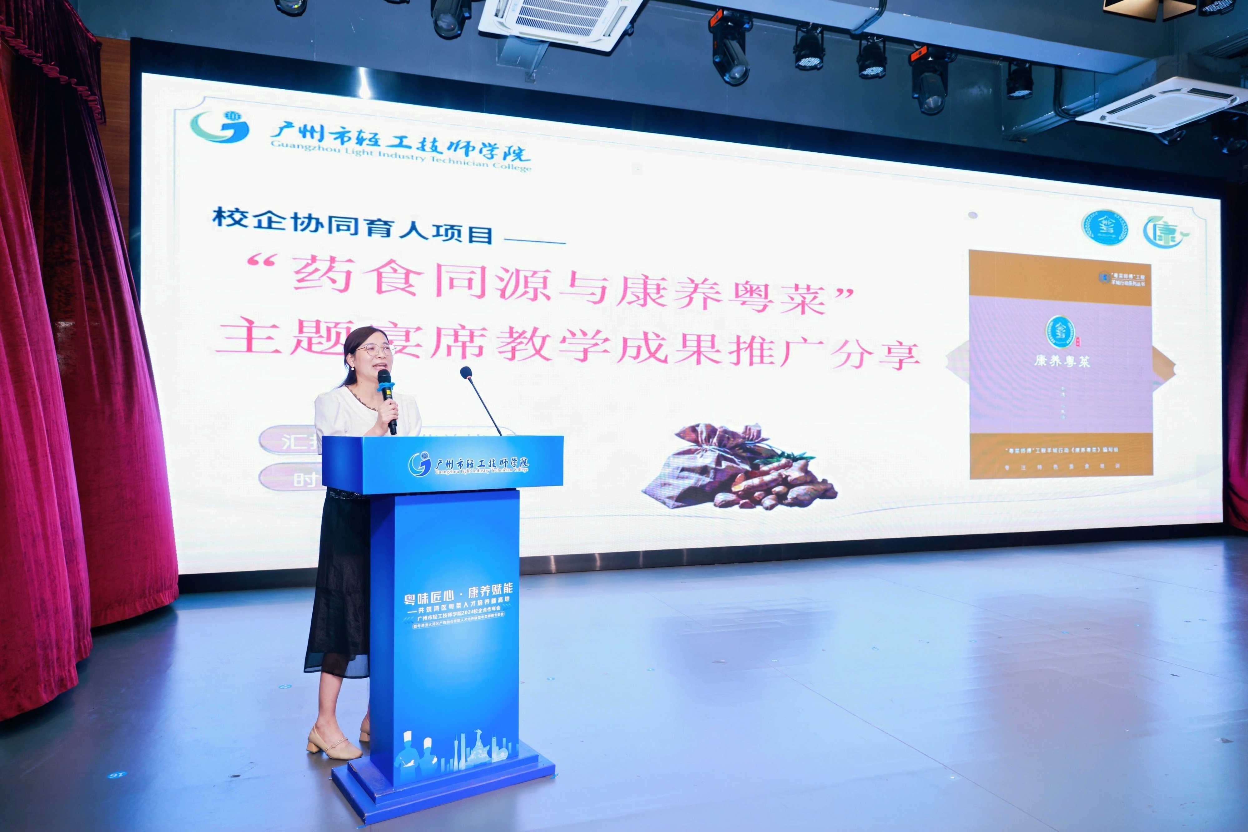 学院康养服务产业系主任董韵捷进行了校企协同育人项目“药食同源与康养粤菜”主题宴席的教学成果分享,她从研发思路到教学实践,从菜品创新到人才培养,围绕《康养粤菜》的研发与推广历程,全方位展示了校企协同育人的丰硕成果,为康养粤菜发展及人才培养提供了宝贵经验。