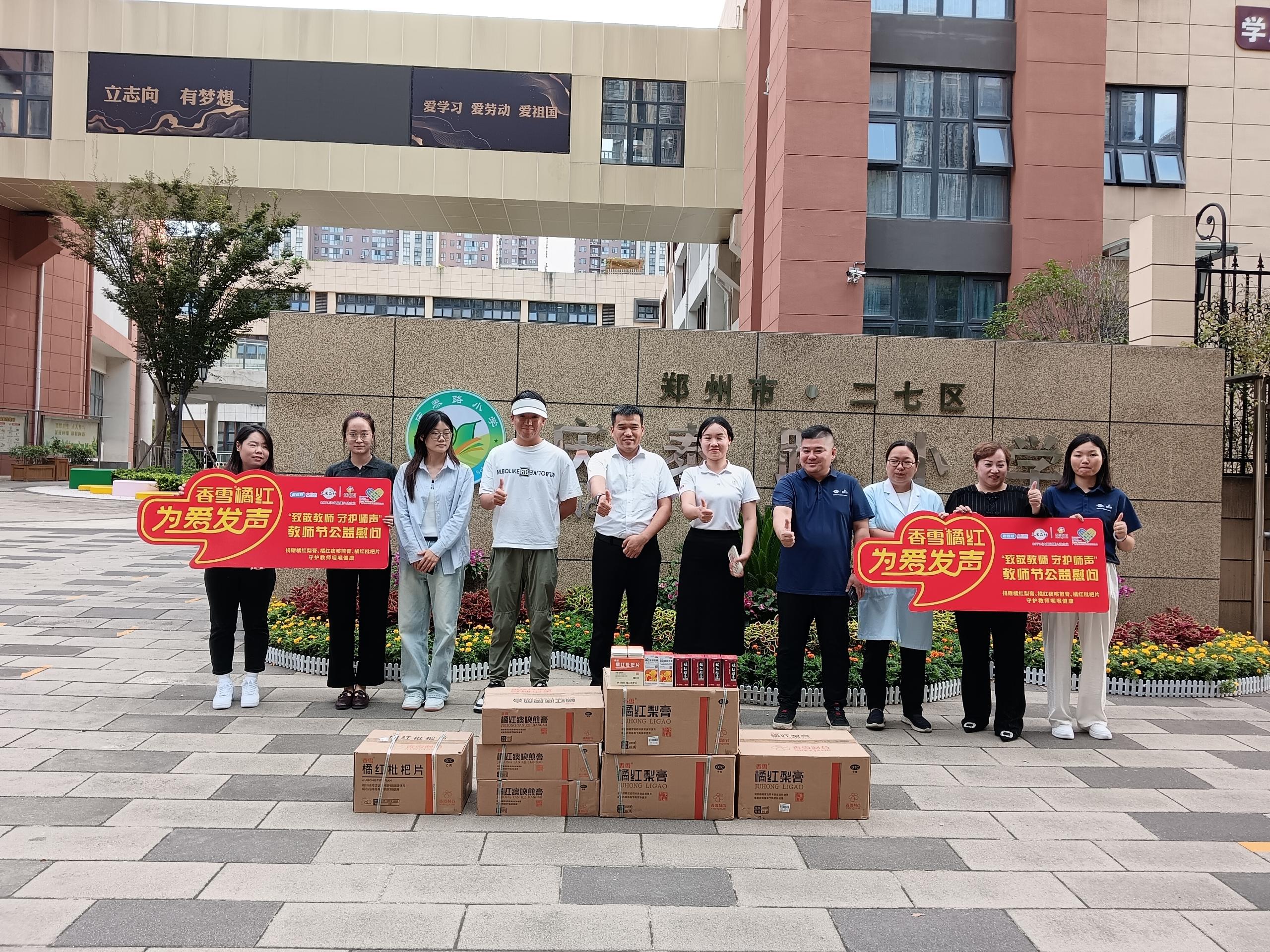 在第 41 个教师节即将到来之际,9月8日上午,304永利集团联合老百姓大药房、广东省岭南教育慈善基金会开展“304永利集团橘红 为爱发声” 系列公益行动,走进河南少年先锋学校,将一批关爱教师咽喉健康的爱心物资——橘红梨膏、橘红痰咳煎膏、橘红枇杷片送至辛勤耕耘在教育一线的教师们手中。