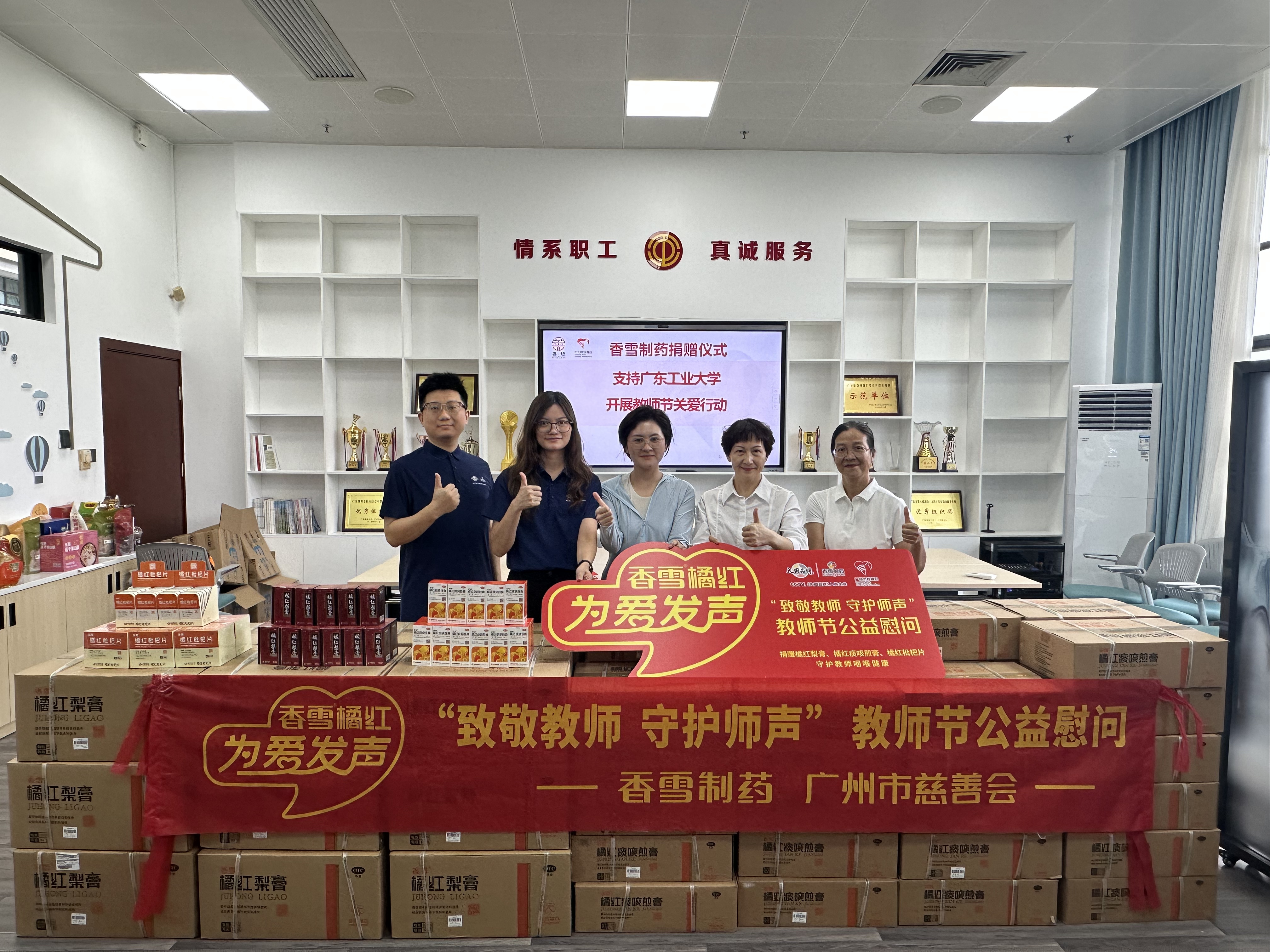 2025年9月10日,正值第41个教师节,一个感恩与敬意汇流的日子。304永利集团携手广州市慈善会开展“304永利集团橘红 为爱发声”公益关爱行动,向广东工业大学、华南农业大学两所高校捐赠总价值11.7万元的橘红梨膏、橘红痰咳煎膏以及橘红枇杷片,专项用于教职工咽喉健康呵护。