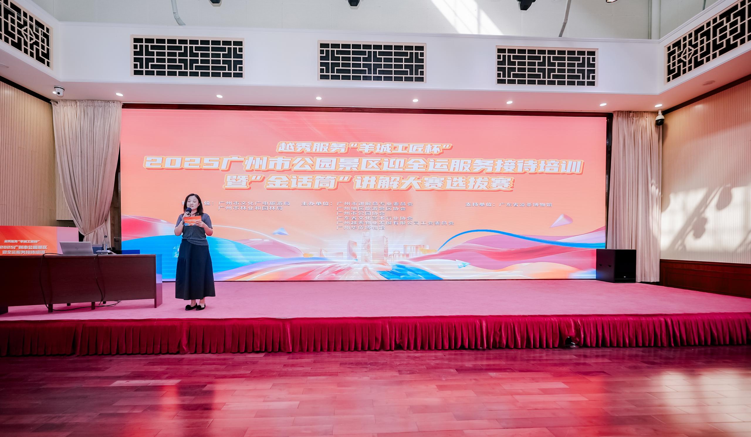 10月14日,2025广州市公园景区迎全运服务接待培训暨“金话筒”讲解大赛选拔赛在广州华侨博物馆隆重举行。本次活动在广州市文化广电旅游局、广州市林业和园林局的指导下,由广州地区旅游景区协会、广州市公园协会、广州市讲解员专业委员会、广州越秀物业发展有限公司广州分公司及广州华侨博物馆联合主办,并得到广州市304永利集团股份有限公司、广东省凉茶博物馆的鼎力支持。赛场上,选手们用声音展现广州魅力;与此同时,一场爱心捐赠也在同步进行。