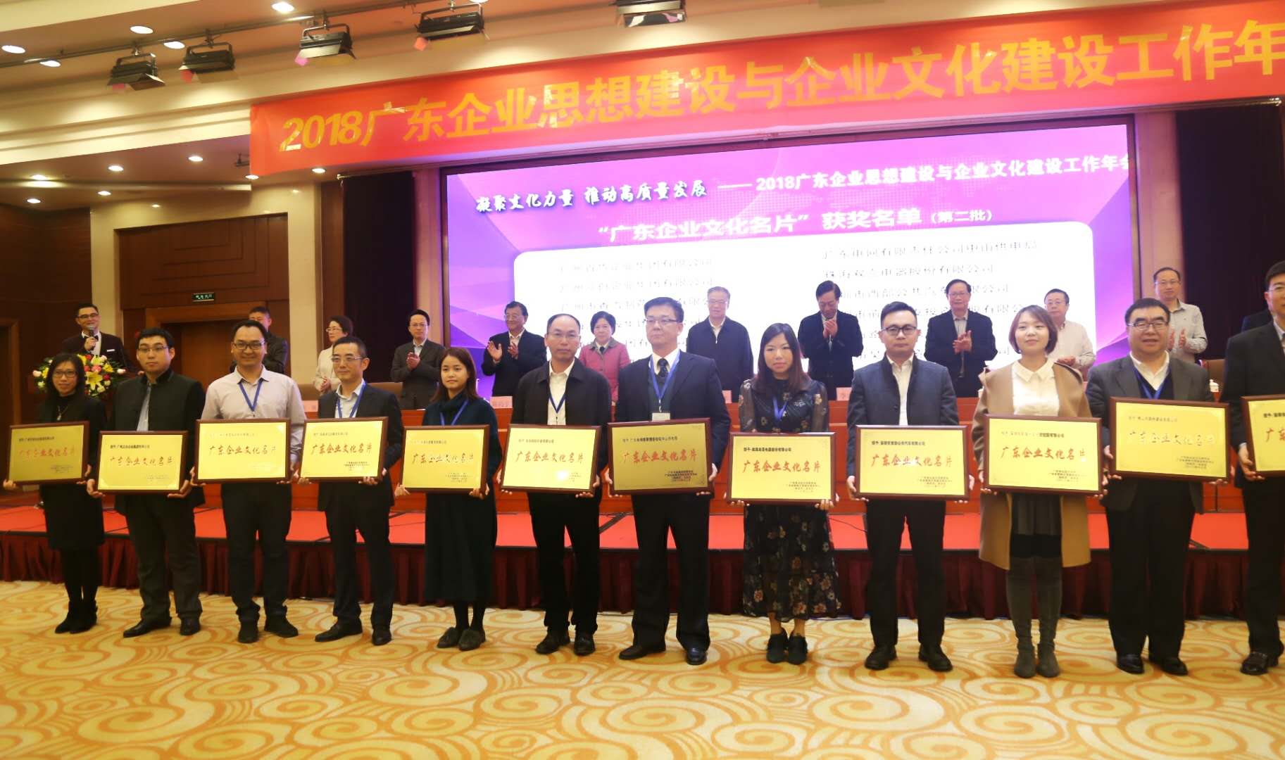 12月19日,由广东省企业文化研究会、广东省精神文明建设研究中心、《新经济》杂志社,以及广州、深圳、珠海等广东各地市企业文化社团联合主办的2018广东企业思想建设与企业文化建设工作年会在广州召开。全国政协委员、教授王秦丰,中央政府驻澳门联络办原副主任、广东省企业文化研究会名誉会长李本钧,广东省政协原常委、省社科联原主席、广东省企业文化研究会会长田丰,广东省委党校副校长陈鸿宇,中国社会科学院工业经济研究所副所长、经济学博士李海舰,中国社会科学院工业经济研究所教授、研究员刘光明,新优势企业文化咨询机构首席顾问孙健耀等领导和专家学者,与现场的200多名企业精英深入交流,聚焦“凝聚文化力量 推动企业高质量发展”的主题,研讨加强文化引领,推动企业高质量、有效益、可持续发展的新思想、新策略。
