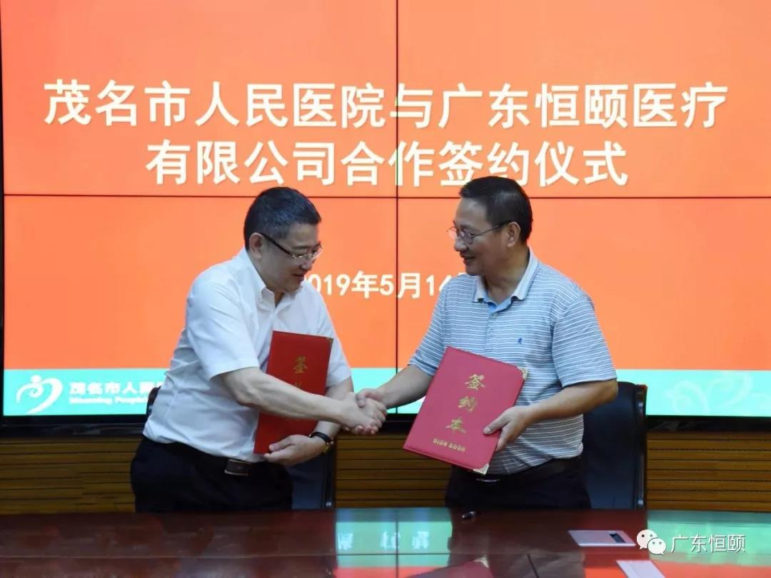 2019年5月14日下午,茂名市人民医院与广东恒颐医疗有限公司签署战略合作协议,建立联盟合作关系,开启合作新征程,建立以茂名市人民医院为中心的医联体。茂名市人民医院院长梁岩、广东恒颐医疗有限公司董事长黄滨及公司高管参加签约仪式。