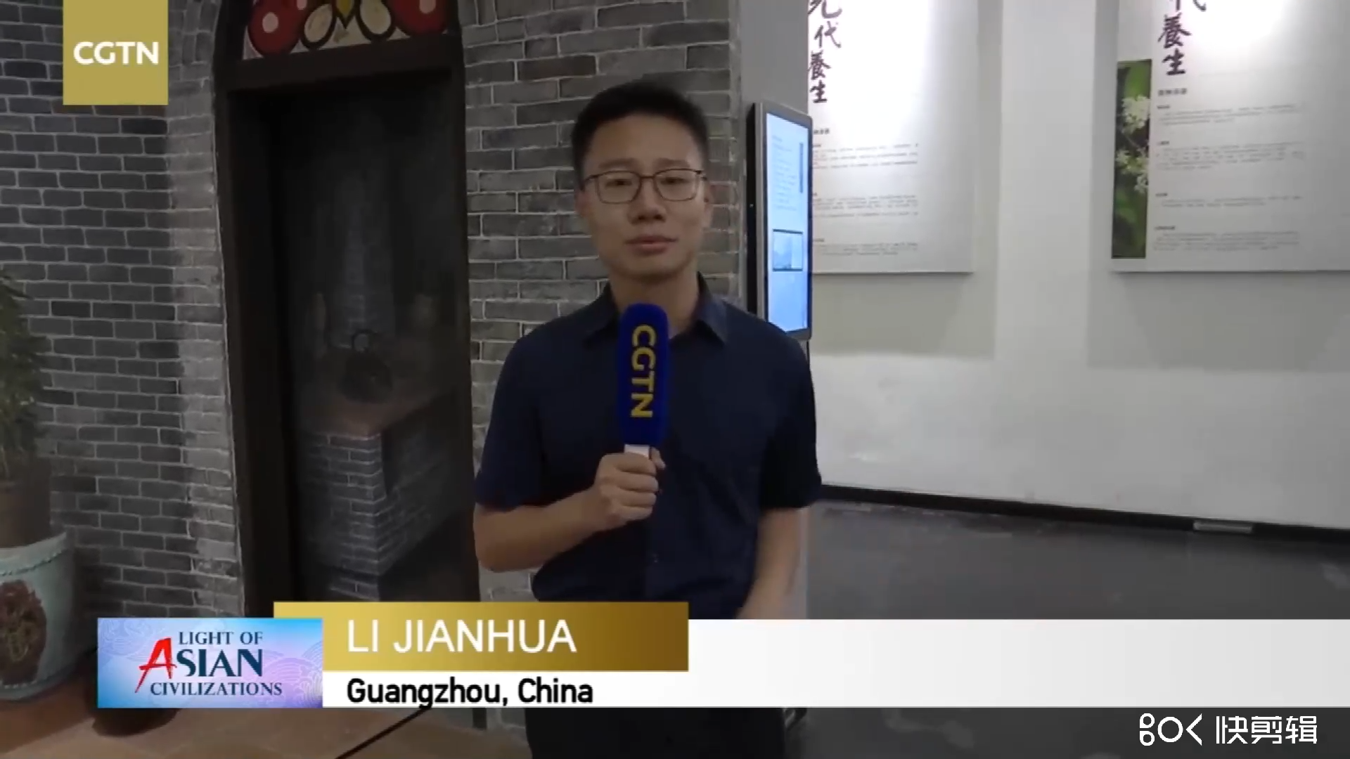 中国国际电视台CGTN特派记者李建华在凉茶博物馆直播现场