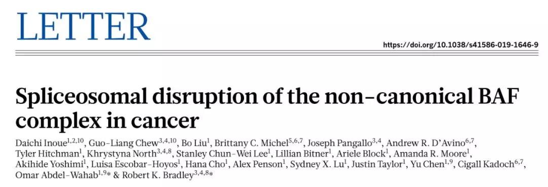 由于SF3B1对生成正常RNA的重要性,在研究中,科学家们招募了数百名患有不同癌症的病人,并寻找他们体内的RNA变异。 在分析后,他们发现在SF3B1出现突变的患者体内,BRD9基因转录成的RNA出现了异常——在其序列中,出现了一段来自非编码DNA的序列。