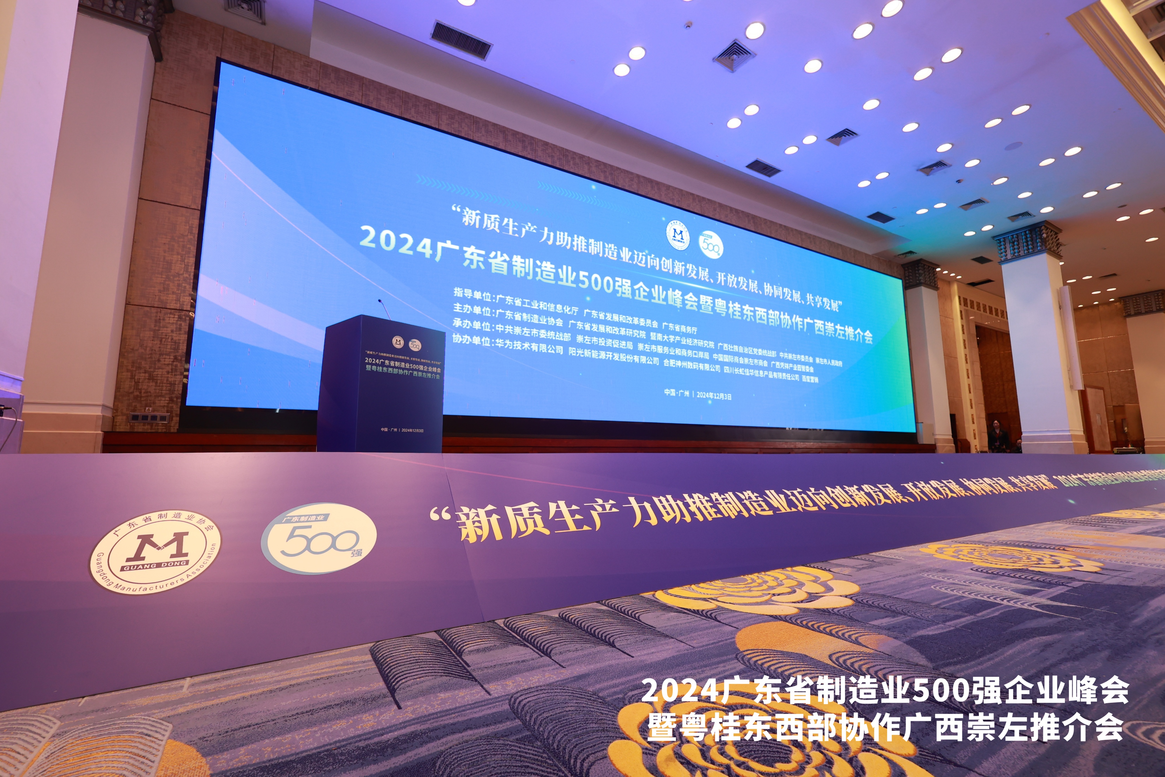 为贯彻落实国家战略部署,为广东省制造业企业寻求多元化发展之路,探讨该类企业在政策支持、产业转型升级、投资结构优化、市场开拓等方面的经验担当,推动广东制造大省迈向制造强省,2024广东省制造业500强企业峰会暨粤桂东西部协作广西崇左推介会于2024年12月3日下午在广州东方宾馆举行。 ...