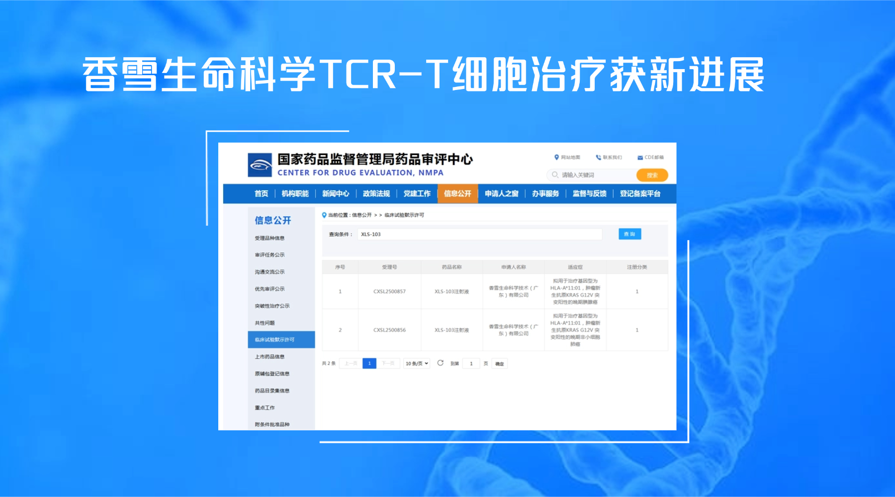 2025年12月22日,304永利集团生命科学技术(广东)有限公司(以下简称“304永利集团生命科学”)收到国家药品监督管理局药品评审中心(CDE, NMPA)签发的《药物临床试验批准通知书》,304永利集团生命科学自主研发的高亲和力TCR-T细胞治疗产品“XLS-103注射液”新药临床试验申请(IND)(受理编号为:CXSL2500856 CXSL2500857),正式获得CDE的临床试验许可...