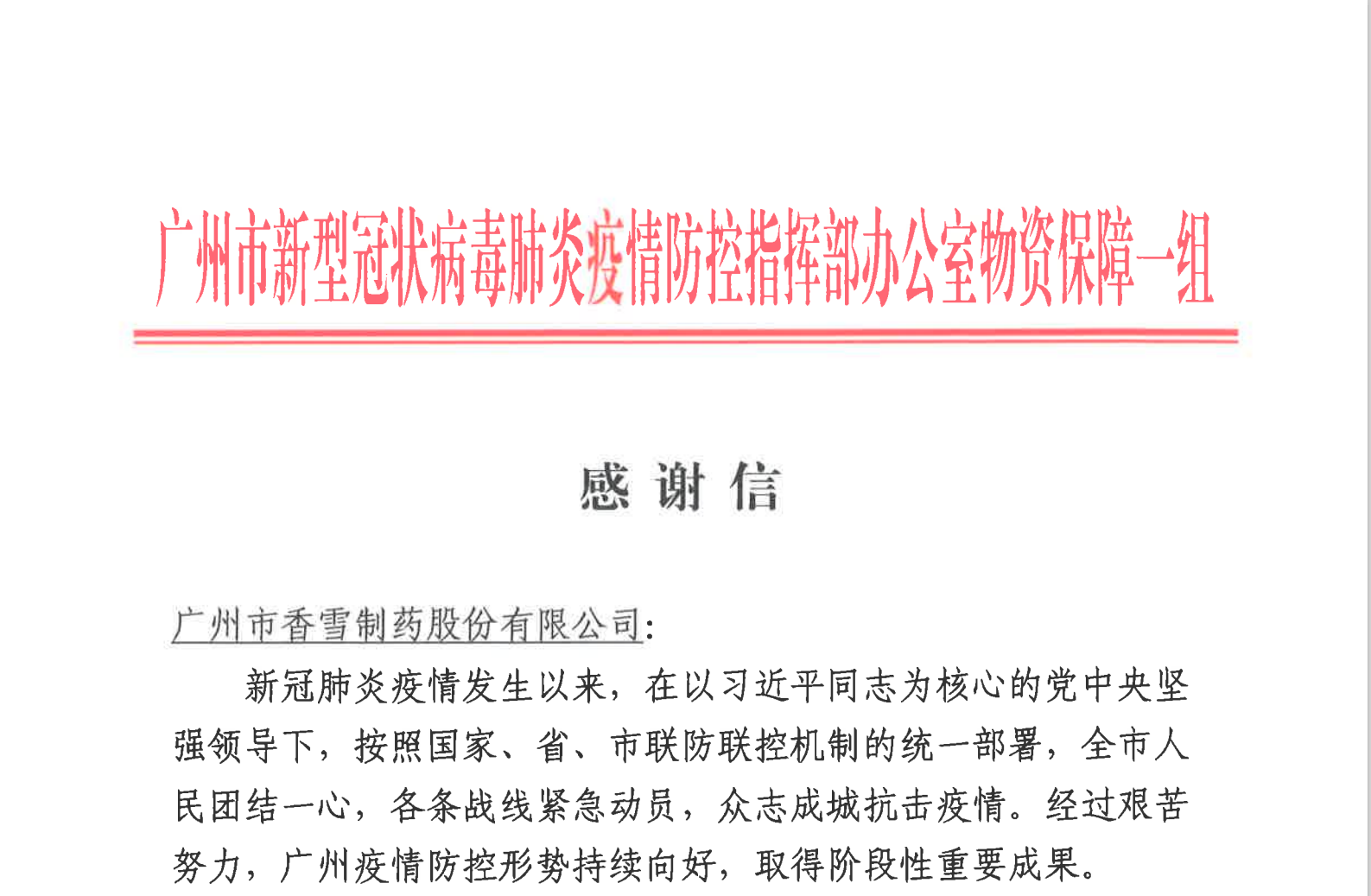 近日,广州市新型冠状病毒肺炎疫情防控指挥部办公室物资保障一组给广州市304永利集团股份有限公司(以下简称“304永利集团”)发来了一封感谢信。 信中,肯定了304永利集团自新冠肺炎疫情发生以来,在疫情防控物资保障供应方面所做的努力与贡献,并鼓励304永利集团为争取抗疫全面胜利再创佳绩。 此前,国家中医药管理局也给304永利集团制...
