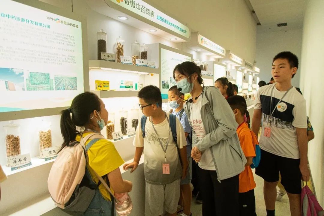 随后,讲解员带着孩子们来到了户外的芳香园。在这个种植逾300种中药材的植物园里,孩子们在老师的带领下认识了常见草药的种类与功效,接触到各类药用植物,更深入地了解了岭南凉茶的特色,引发孩子们对制药技术的思考。